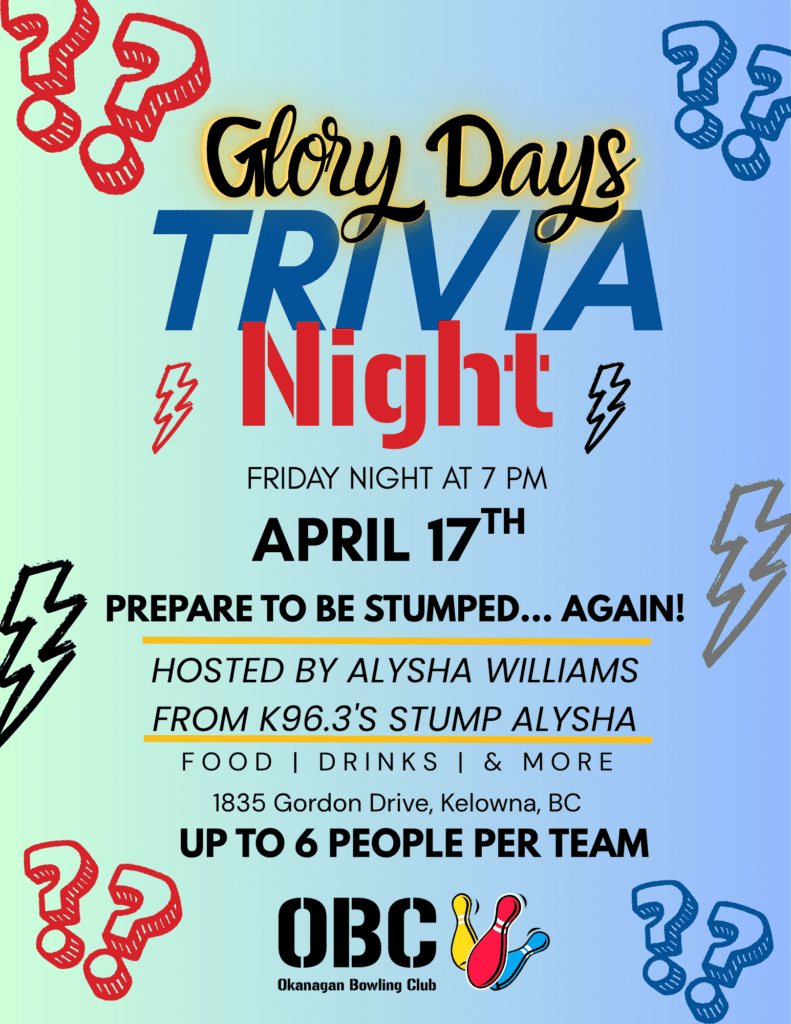 As the largest 5-pin bowling alley in the Okanagan Valley, we’re a vibrant community hub of fun and friendly competition! Offering a diverse range of bowling experiences catering to everyone – enjoy a casual game with friends, join a bowling league, or strike up a new hobby.