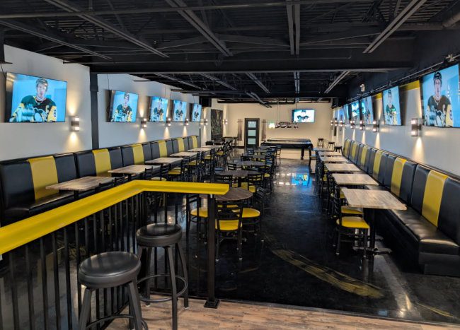 This 1,863 sq. ft. space can host up to 90 people for a multitude of activities including corporate events and Christmas parties to karaoke evenings and good old family fun nights. Glory Days is equipped with 2 Pool Tables, 2 Dart Boards, 11 TVs, 1 Karaoke Screen, 2 Wireless Microphones and a sound system to match.